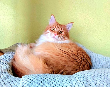 Mutter: Lucina La Boom geboren am: 10.08.2024 Farbe: red-mackerel-tabby/white HCM/PKD Schall: 06/2025 unauffällig HD/PL: 0/0 HCM/SMA/PKdef.: N/N Blutgruppe: A |